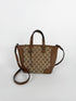 This Gucci handbag is crafted from GG canvas in brown and champagne gold. It features a zip closure, an internal zip pocket, two open pockets for organisation, and comes with an adjustable strap.