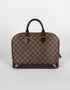 Alma PM is a timeless handbag crafted in France from Damier Ebene canvas with brown leather trim. It features rolled leather handles, a top zip closure, and a structured silhouette. The interior is lined in brown textile and includes slip pockets for everyday essentials. A classic piece that blends durability with signature Louis Vuitton style.